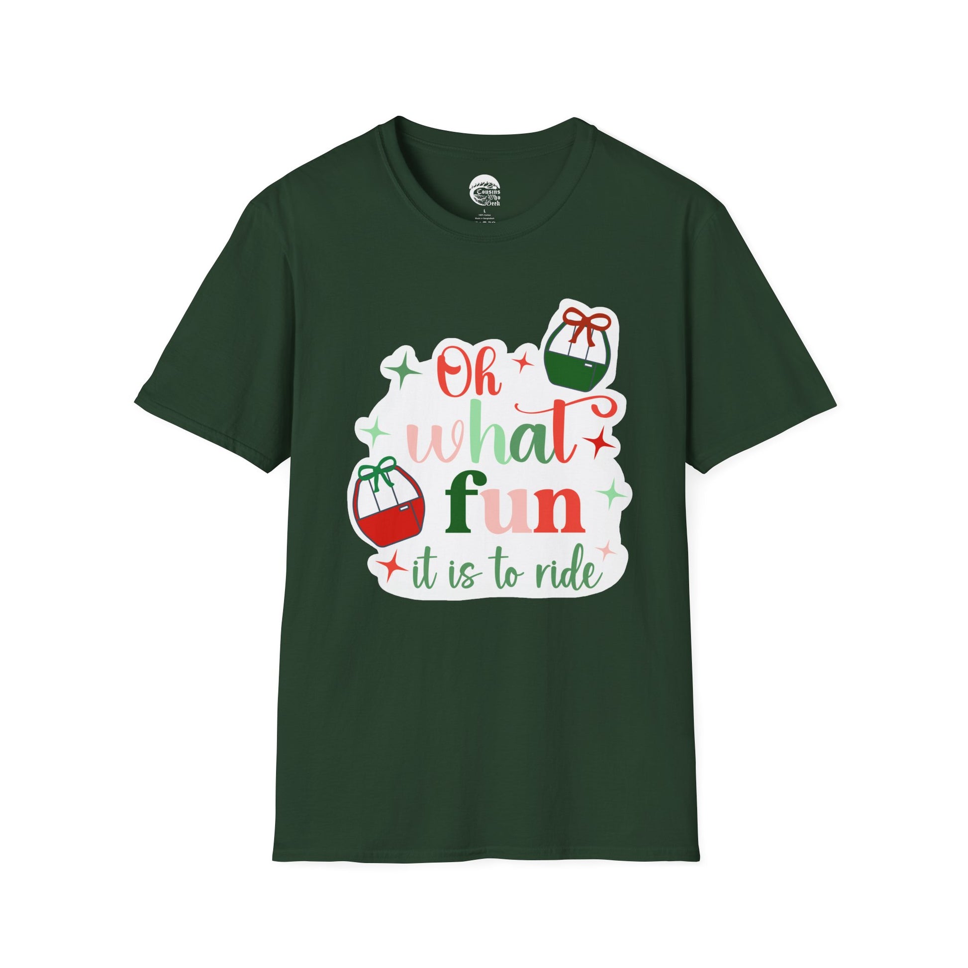 Bring a little extra magic to your holiday season with our “Oh What Fun It Is To Ride” Holiday Skyliner T-Shirt! Featuring a festive gondola design wrapped in lights and snowflakes, this cozy tee is perfect for park lovers, travelers, and anyone who believes the best rides are shared. Made with premium cotton blends for lasting comfort and color — it’s the perfect gift or outfit for your next holiday adventure!
